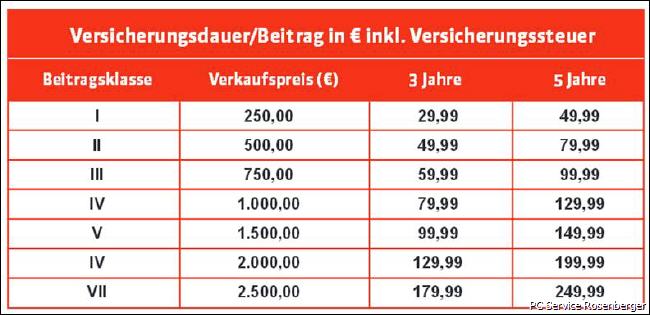 100% KOSTENÜBERNAHME - bei einem ersatzpflichtigen Schaden werden Ihnen die Reparaturkosten erstattet, bei einen Totalschaden erhalten Sie ein Neugerät!
